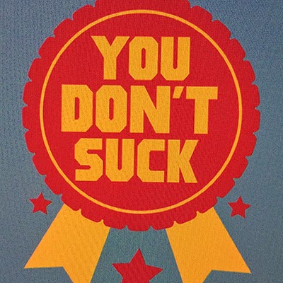 #140 - that we don't suck! i was searching for a prize ribbon online and this came up. i think it's awesome. it's from www.heartsandlaserbeams.com